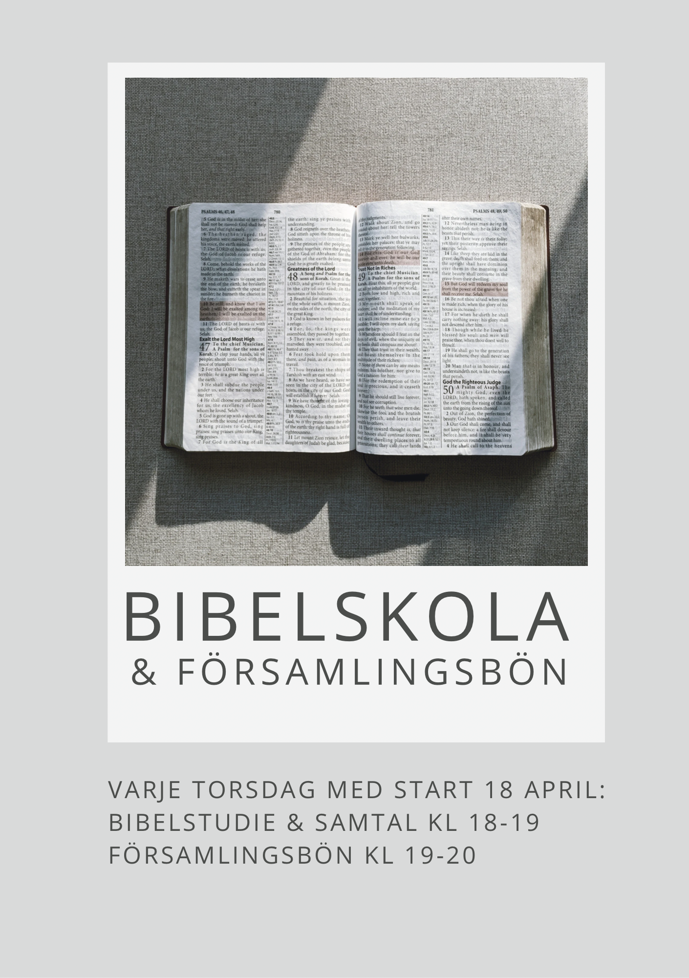 Bibelskola och bön Visa större bild marcus wickström2024-04-10T20:07:44+02:00 Relaterade inlägg Sopplunch Sopplunch 17.02.2026 Månadsbrev sid 2 Månadsbrev sid 2 29.01.2026 Månadsbrev sid 1 Månadsbrev sid 1 29.01.2026 Barn- och familjekonferens sön 8/2 Barn- och familjekonferens sön 8/2 15.01.2026 Alphakurs och Alpha Bönekurs Alphakurs och Alpha Bönekurs 13.01.2026