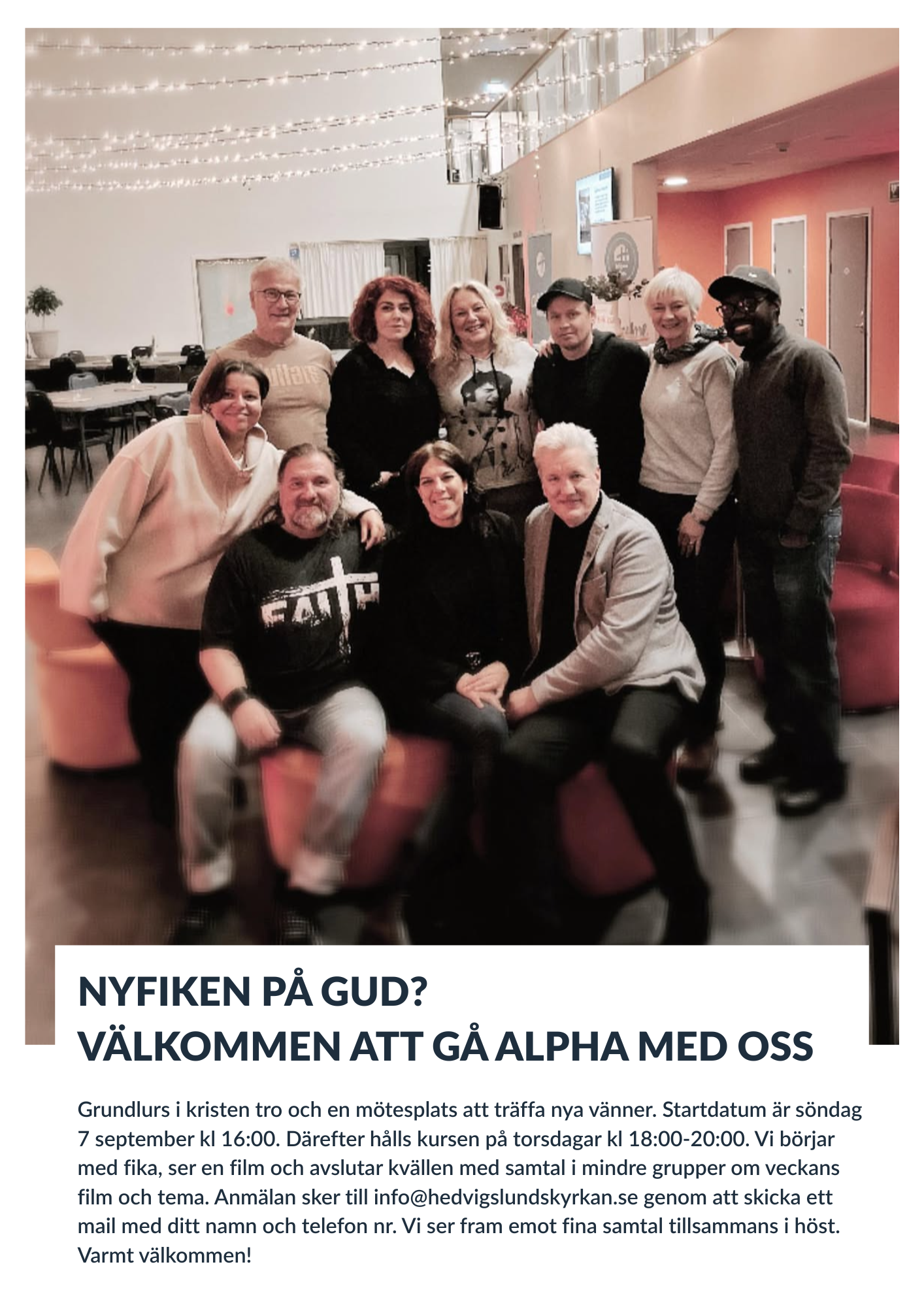 Alpha Hösten 2025 Visa större bild Vi ser redan fram emot hösten när nästa Alphakurs startar. Läs mer om hur en Alphakurs fungerar här marcus wickström2025-07-04T13:34:26+02:00 Relaterade inlägg Bön & fasta 4/1 – 1/2 2026 Bön & fasta 4/1 – 1/2 2026 18.12.2025 Månadsbrev sida 2 Månadsbrev sida 2 18.12.2025 Månadsbrev sida 1 Månadsbrev sida 1 18.12.2025 Ekumenisk bönevecka 12-17 januari! Ekumenisk bönevecka 12-17 januari! 16.12.2025 Vill du jobba hos oss? Vill du jobba hos oss? 04.12.2025